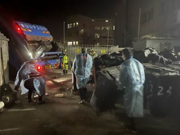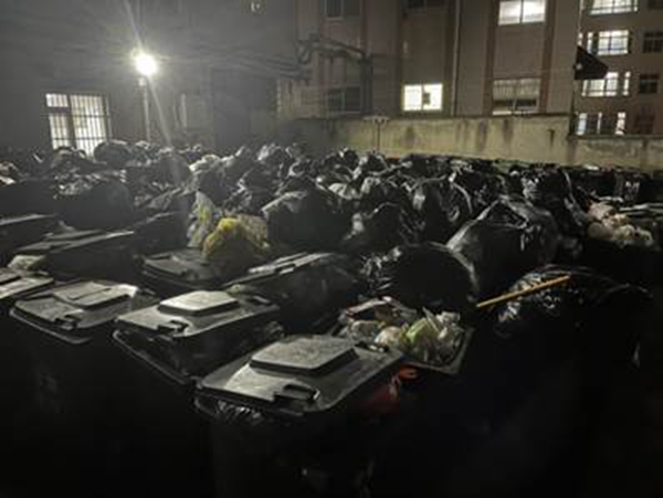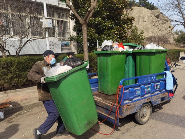 校园封闭以后,特别是取消堂食以后,学生公寓楼的垃圾量陡增,给本来已经超负荷运转的垃圾转运工作增加了难度。负责垃圾清运工作的物业人员加班加点及时将垃圾运往垃圾中转站,有时候连饭都顾不上吃。按照疫情防控要求,将外运垃圾车进校时间调整到晚上,而且要求对垃圾车进行无接触全方位消毒。四方校区每天产生的垃圾量在200桶以上,多的时候高达250桶。如何及时清运垃圾成了摆在眼前的一道难题,两校区有关中心科室不等不靠,迎难而上。四方校园中心和公寓中心组织康净物业、明德物业人员穿上防护服、戴上防护帽轮流装车,从开始装车到完成垃圾中转站的清理消毒需要近2个小时;崂山校区后勤科、明德物业人员全程跟踪外运垃圾车严格按照规程操作,高强度的劳动为的是确保垃圾及时清运出学校,以保证校园干净整洁美丽。