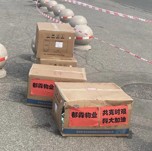 明德物业、都霖物业、中铁诺德物业、都市科技园物业以及山东弘毅节能服务有限公司(超级澡堂)、青岛永翀顺达工贸有限公司(直饮水)、青岛吅美智慧物业管理有限公司(洗衣机)等外包服务单位在做好校园服务保障的同时,积极响应学校《新冠肺炎疫情防控物资募集倡议书》的号召,纷纷伸出援手,通过各种渠道向学校倾情捐献防护服、隔离衣、医用口罩、消毒液、免洗凝胶等紧缺急需的防疫物资,弘毅公司还免费提供洗浴单间,协助学校解决值班教职工洗澡问题。济南慕特尔服饰有限公司等床上用品供应商也通过各种渠道捐款捐物助力学校抗疫工作。物业公司、外包服务单位与学校携手同心抗疫,为学校早日打赢疫情防控阻击战奉献爱心力量。
