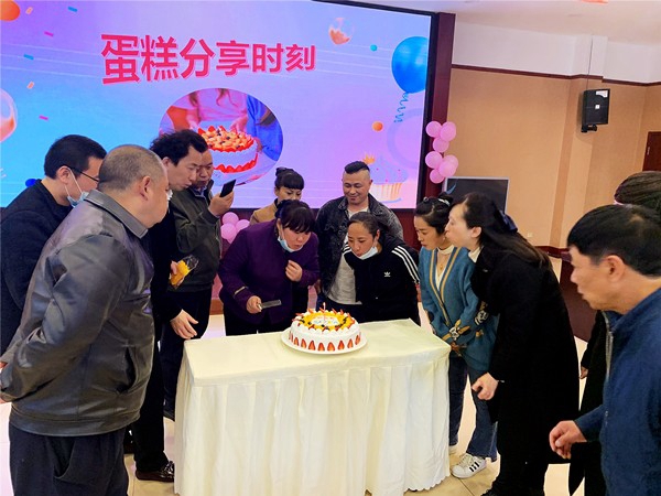 生日会现场,员工逐一进行了自我介绍、趣事分享、工作建议等。伴随着若干小游戏,现场气氛持续升温,充满了欢声笑语。生日会接近尾声时,餐饮部带着甜甜祝福和深深关爱,缓缓呈上自制的生日蛋糕。在生日歌中,大家一起许下愿望、合照留念,定格与铭记这个难忘的生日会。