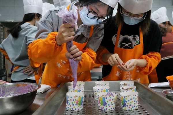 4月9日,浙江农林大学劳动教育试点课程——《大学生烹饪基础教育与实践》第一次烘焙实践课在集中加工中心开课,后勤餐饮中心加工管理部负责人作为主讲教师为学生授课。