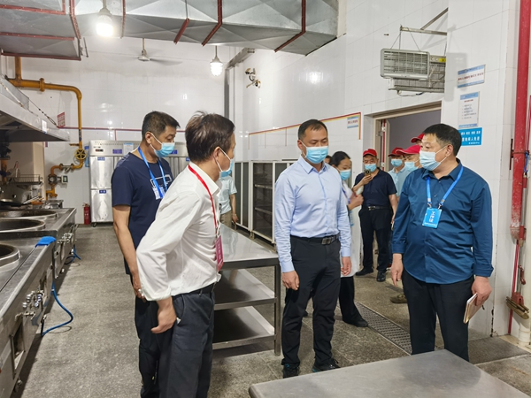 副总经理吴丁、洪圣清带领饮食中心主要成员检查了幕府餐厅疫情防控工作、应急保障住宿点和幕府餐厅的食品安全工作,并代表公司现场慰问了幕府餐厅的服务保障人员。