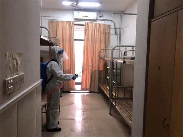 校园临时封控管理期间,嘉兴学院后勤部门全体员工克服困难、以校为家,在办公室、会议室、食堂大厅、杂物间等地利用折叠床、餐椅、办公椅或床板临时搭建床位,就地解决住宿问题。4月10日,梁林校区恢复线下教学通知下达后,后勤部门紧急抽调10余名骨干员工组成物业消杀小队,严格落实“人、物、环境”同防工作要求,对20余幢教学楼、300余间教室、100余个卫生间和图书馆等重点场所进行了卫生保洁和消杀,对楼宇内的设施设备进行了维护和保养。整个疫情防控期间,后勤部门尽职尽责,高频次、全覆盖地做好各教学、办公和生活场所的消杀工作;自营超市物资充足、运营有序;食堂工作人员确保供餐平稳有序,并推出“嘉里青团”等特色早餐,联合开展“嘉里奶茶,情暖‘疫’线”免费赠送奶茶活动,广受师生欢迎。