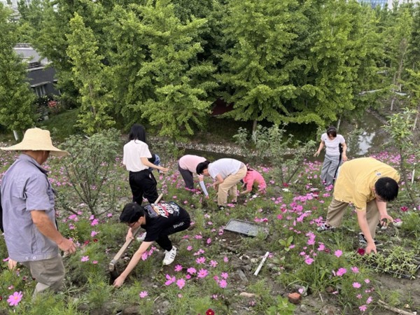 5月7日,两个支部的党员在成都中医药大学药用科普植物园坡地开展向日葵幼苗移栽。在绿化师傅介绍完栽种方法后大家便热火朝天地忙绿起来,松土、挖坑、栽苗、培土、浇水,600余株绿色幼苗在沃土上尽情地舒展着身姿。