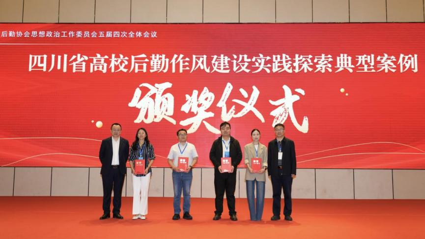 会议为“四川省高校后勤作风建设实践探索典型案例”获奖代表颁发荣誉证书。本次评选旨在树立高校后勤作风建设标杆,营造创先争优良好氛围,推动作风建设走深走实、见行见效。