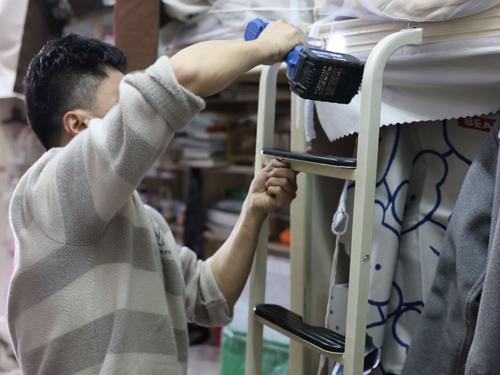 经前期调研,本次更换共涉及374余间学生寝室。为确保改造贴合学生实际需求,学生公寓服务中心多次协调中标商技术人员现场勘测、精准测量,最终设计并选用了兼顾安全性与舒适度的新款床扶梯,既有效提升攀爬体验,又彻底消除夜间上下床的安全隐患,全方位筑牢学生居住安全屏障。