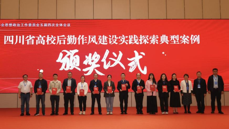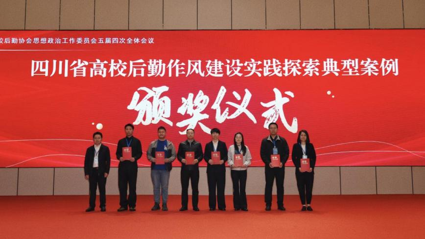 会议为“四川省高校后勤作风建设实践探索典型案例”获奖代表颁发荣誉证书。本次评选旨在树立高校后勤作风建设标杆,营造创先争优良好氛围,推动作风建设走深走实、见行见效。