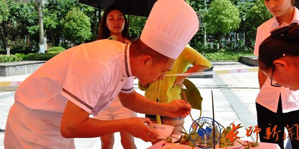 在“厨艺大比拼”环节,我校接待餐厅总厨和食堂师傅在活动现场展示其精湛厨艺,增加了师生对于我校食堂和餐饮管理的了解,也有利于推动我校餐饮服务质量的提高。外焦里嫩的金毛狮子鱼,色泽葱翠的富贵竹,还有浓香扑鼻的黄焖鸡等诸多美食,使得在场同学垂涎欲滴。