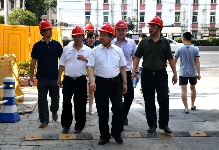 黄维校长一行首先来到丁家桥二食堂改造工程现场,认真听取了后勤服务部副部长陈浩春、后勤服务集团总经理童毛弟关于工程改造情况的汇报。黄校长指出,当前学校正处于争创“两个一流”大学的关键时期,必须大力推进人才引育、协同创新、文化引领、全球拓展战略,“一心一地”双核驱动,见“人”见智相互促进。其中人才引育是南工跨越发展和“两个一流”大学建设的核心战略,要抓紧推进基础设施完善工程,为教师们营造“淡定、自信、优雅、从容”的工作氛围和生活环境,使他们有用武之地、无后顾之忧。