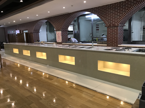 装修改造食堂餐厅,进一步提升服务质量。后勤集团利用暑假对北区食堂三层教工餐厅自助餐台进行了改造,新学期,自助餐台已投入使用;为中区食堂、北区食堂及北园餐厅统一安装电子显示屏,不断改善我校学生食堂用餐环境,目前,新装的菜品价格电子显示屏已投入使用;更换中区食堂破损瓷砖,装修卫生间;维修北园餐厅塑钢窗,修补瓷砖;对东区食堂、西区食堂内部进行维护和检修;配合有关单位开展西区食堂隔油池及污水管道等设施改造工作,提升油污隔油处理能力;按照工作部署,做好中区食堂室内装修改造工作,从而保障新学期食堂稳定运行;对餐卡室进行整修,整修范围包括外墙粉刷、地砖整修,优化设置服务柜台等,装修工作在8月底完成。