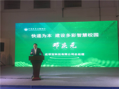 近邻宝科技有限公司总经理邓庆元受邀在科技后勤·智慧校园 新技术应用推广论坛上做了“快递为基,创新为本——建设多彩智慧校园”的演讲。