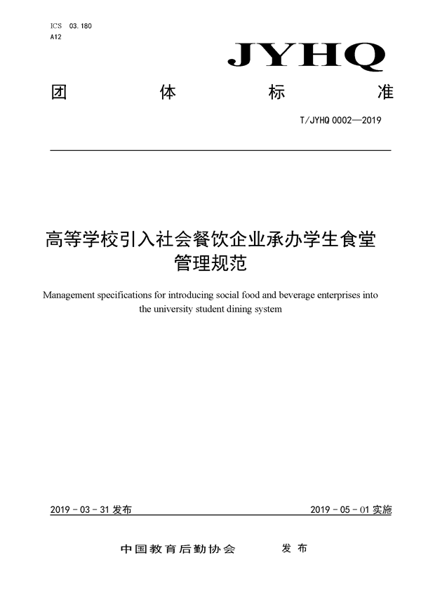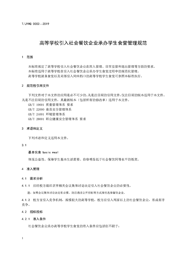 团体标准《高等学校引入社会餐饮企业承办学生食堂管理规范》